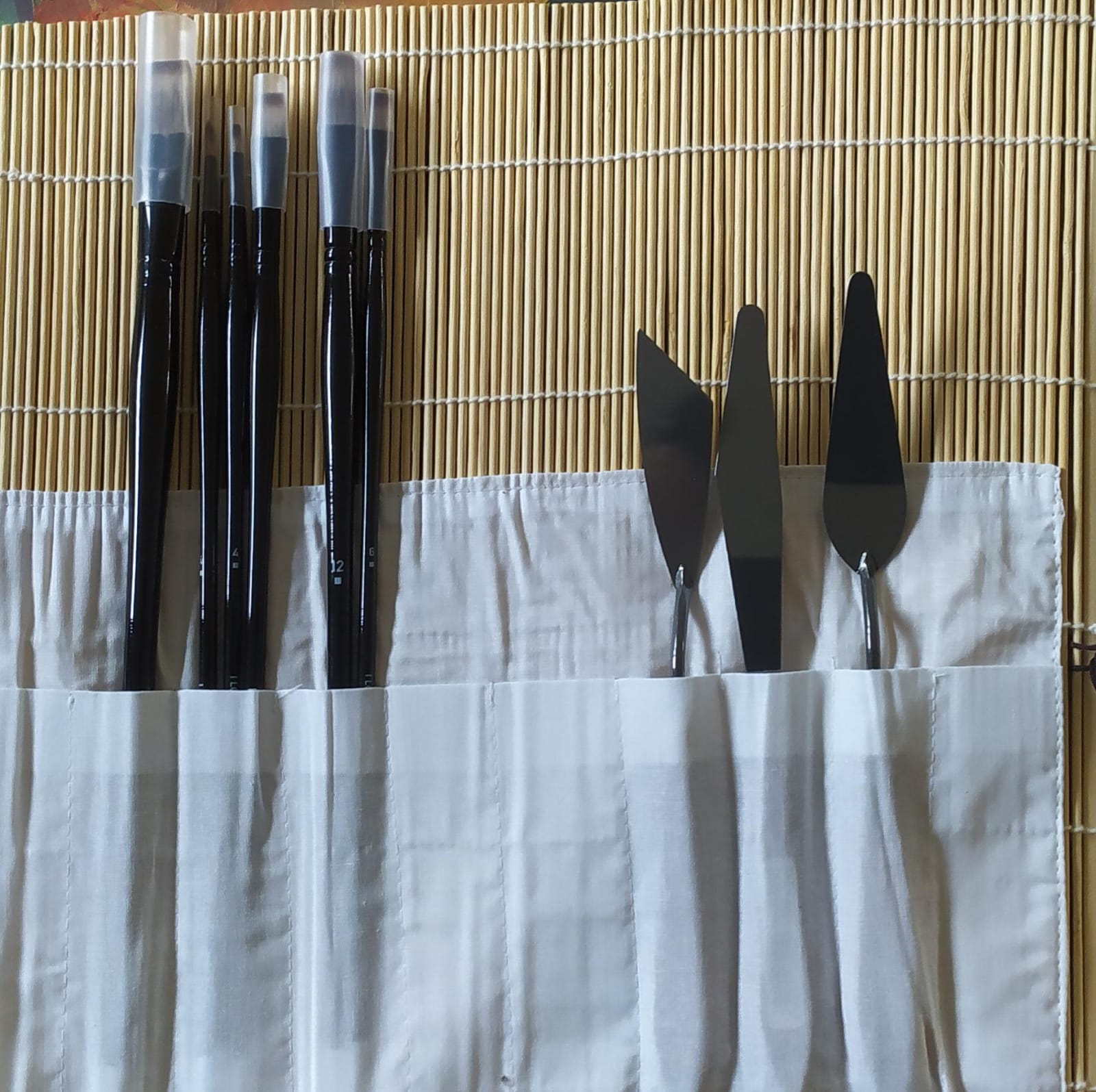Toute la peinture sera posée au couteau avec ces 3 couteaux (presque exclusivement avec la spatule en triangle dissymétrique)
