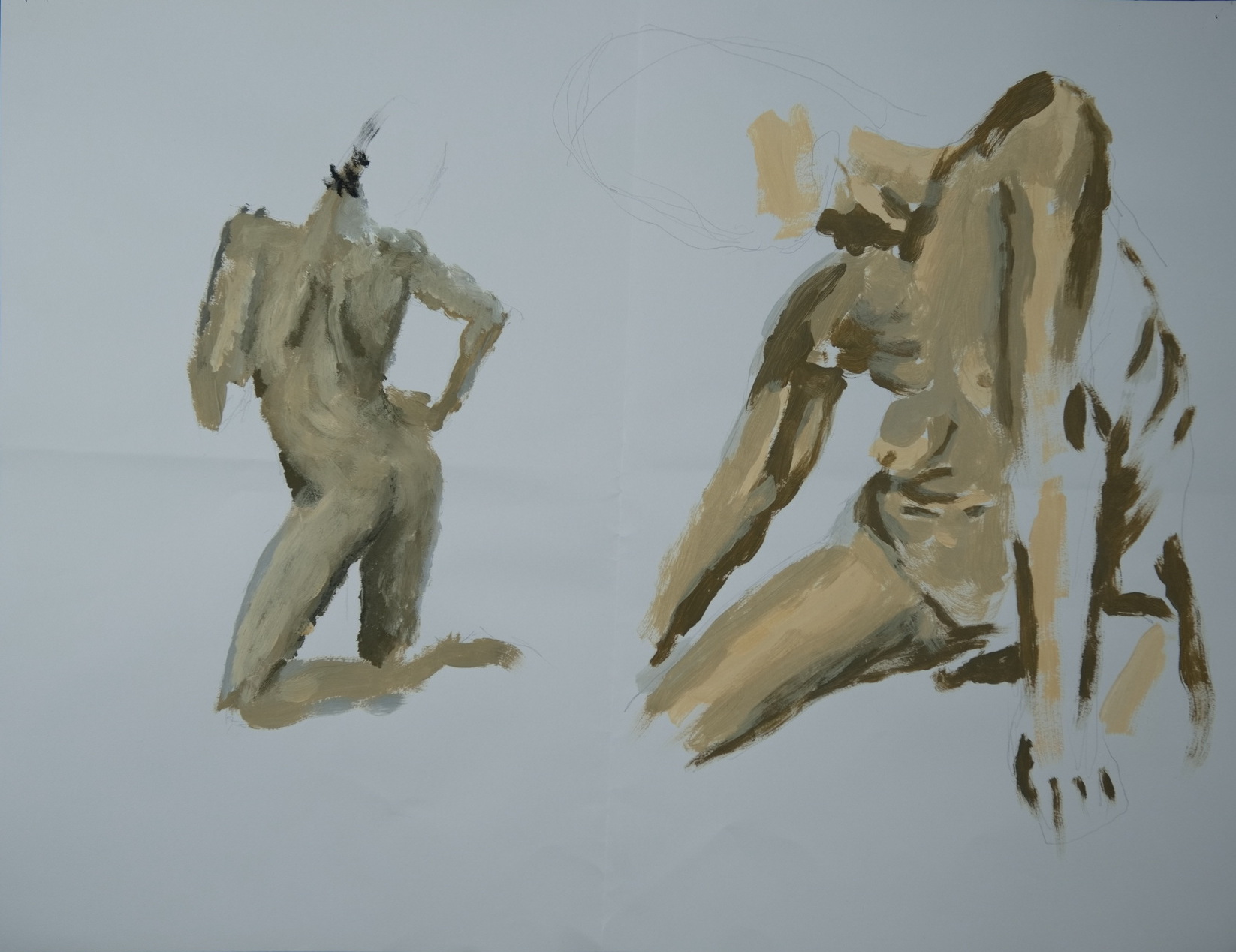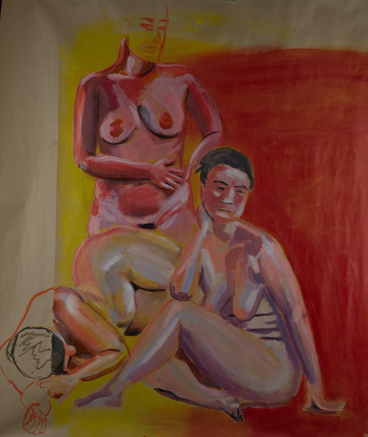 Peintures acryliques réalisées entre les années 2010 et 2012 à l’atelier des Beaux-Arts de la ville de Paris, avec modèle, sous la direction d’Antoine Petel.